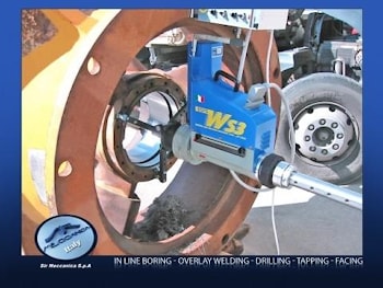 Расточной станок WS 5 осуществляет расточку отверстий больших диаметров в крупногабаритных и громоздких деталях, которые не подлежат разборке и демонтажу. Технология обработки деталей с использованием этого расточного станка даёт ему значительное преимущество перед использованием аналогичного стационарного оборудованием. При этом, мобильность и возможность установки расточного станка непосредственно на обрабатываемую деталь, решают многие технологические проблемы при обработке крупногабаритных и не разборных деталей.