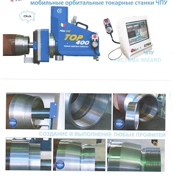 Мобильный расточной станок, способен выполнить расточку и наплавку отверстия с установкой станка непосредственно на обрабатываемую деталь. Особенно актуально его применение при восстановлении отверстий крупногабаритных деталях.
